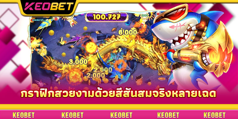 ยิงปลามังกรทองออนไลน์ สร้างความประทับใจด้วยกราฟิก 3D คมชัด จำลองรายละเอียดโลกใต้ทะเล สีสันสวยงาม แสงถูกปรับแต่งอย่างละเอียด ทำให้ภาพรวมของท้องทะเลทั้งสดใสและลึกลับ ปลาเคลื่อนไหวอย่างคล่องแคล่ว ตั้งแต่ฝูงปลาตัวเล็กแหวกว่ายไปจนถึงฉลามน่าเกรงขาม หรือมังกรทะเลขนาดยักษ์